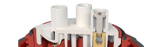 Os canais curvos de passagem dos condutores conduzem as pontas dos condutores com facilidade e segurança até aos contactos.