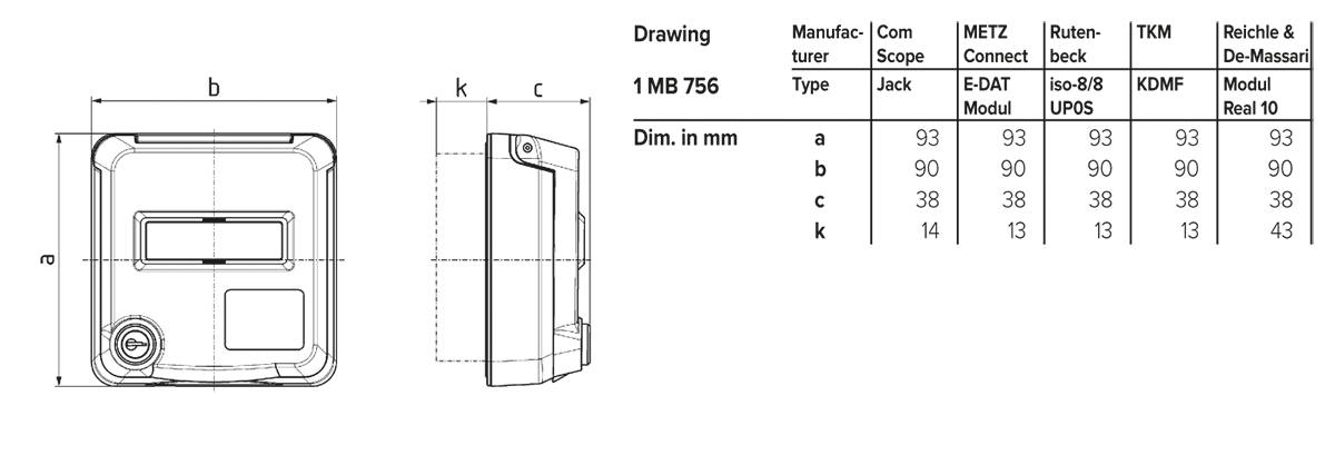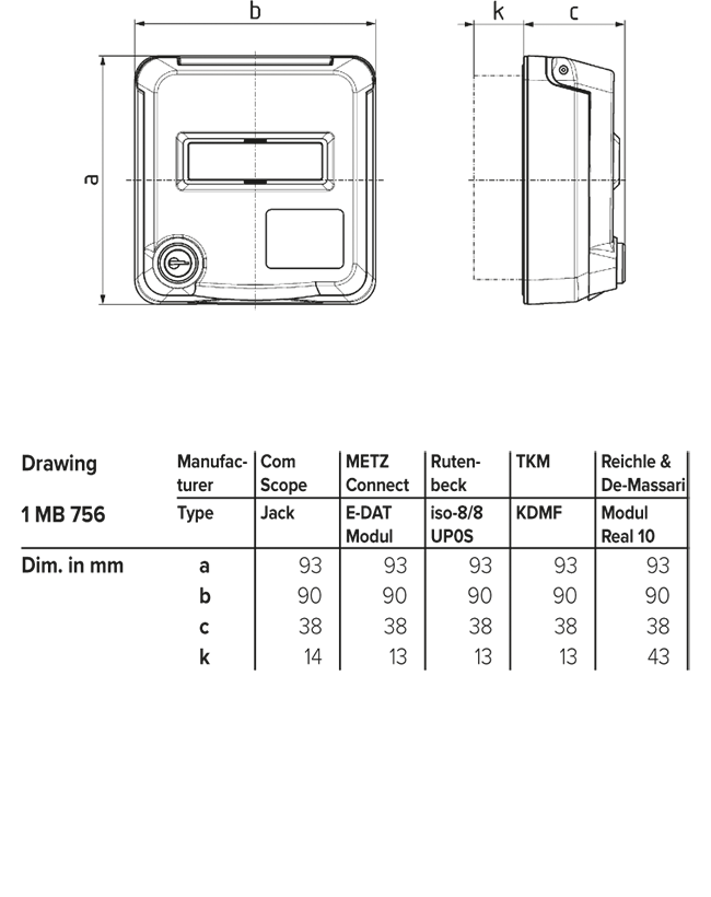 Tomada de dados Cepex com fechadura e campo de identificação, preto azeviche 4645
