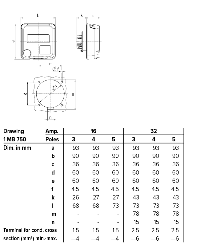 simples, combina com todas as tomadas Cepex de embutir e de painel de 16 A e 32 A, para instalação de equipamentos individuais e para combinação vertical de qualquer número de tomadas