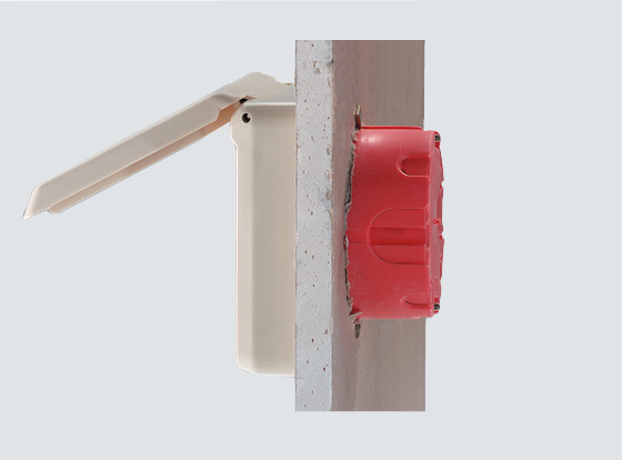 As nossas tomadas de montagem podem ser combinadas com as seguintes caixas para paredes ocas e caixas embutidas: