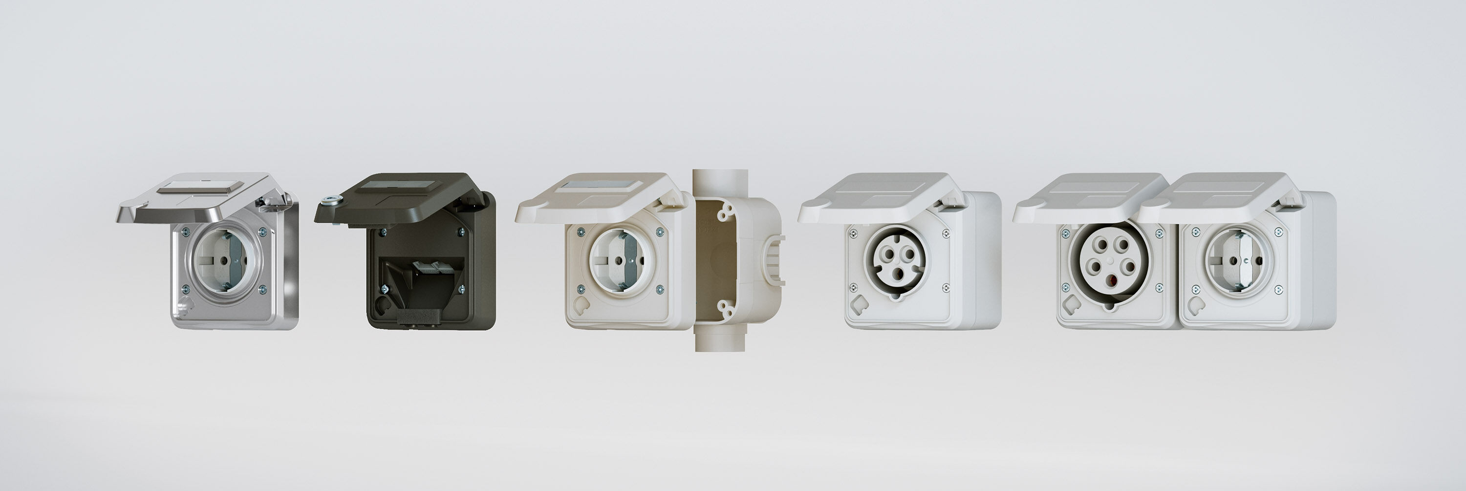 Em branco alumínio, branco puro, branco pérola, preto profundo e cinzento‑claro, o programa Cepex pode adaptar‑se facilmente às cores mais comuns de diferentes calhas e dispositivos de instalação. Com a Cepex, escolhe uma solução moderna de tomadas que combina segurança, funcionalidade e um design uniforme.