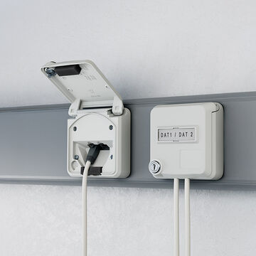 Versáteis e fiáveis: As tomadas de dados Cepex são ideais, por exemplo, para salas de controlo, áreas de armazenamento, laboratórios, aeroportos ou linhas de produção. O funcionamento é feito através de cabos de rede comuns. Podem ser combinadas com tomadas Cepex, CEE e SCHUKO®.