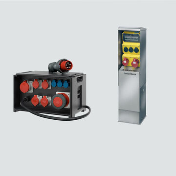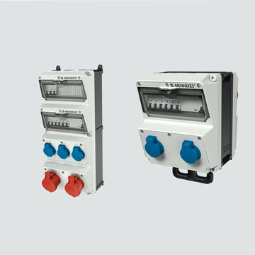 Os distribuidores da rede compacta MENNEKES de plástico de alta qualidade estão disponíveis com uma tomada de dados Cepex bloqueável, com dois módulos de ligação, duas ou quatro tomadas SCHUKO® e com a proteção IP44.