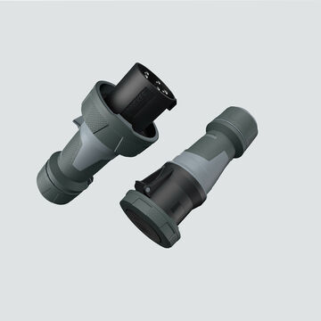Também disponibilizamos as fichas e tomadas como dispositivos para redes industriais de 600 a 690 V. Temos também na nossa gama fichas e tomadas de alta corrente especiais para correntes nominais de 200 a 400 A: Aqui, os contactos das fichas, acoplamentos e tomadas são revestidos a prata. Isto não só melhora a condutividade elétrica, mas também assegura a máxima proteção contra corrosão.